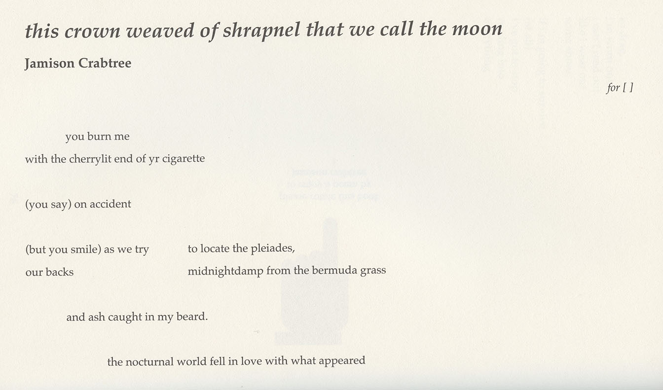 excerpts from "this crown weaved of shrapnel that we call the moon"